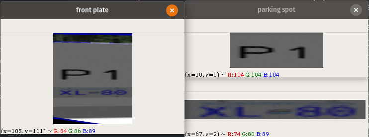 The captured images are first filtered and cropped to identify the portion of the image which has the parking location and plate number information. Below, the images show an example of the unfiltered captured images, followed by the process of locating the areas of the image which hold the information we are looking for. It is worth noting that some of the images we capture are not completely in focus. Regardles, our algorithm was able to correctly identify and crop the images for further processing. After filtering the images, we send them through our pre-trained neural network which outputs the parking location and licence plate number to the terminal and scoreboard with an accuracy of 98%.