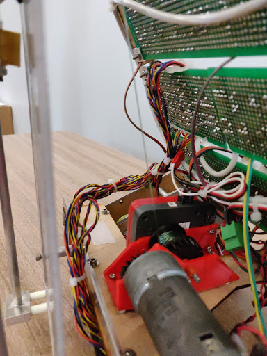 To make our microcontroller, H-Bridges, and QRD 1114 light sensor array circuitry accessible, we designed a crossbar to allow for easy debugging. With this design, all electrical components were easily seen and accessed, and the downtime due to any major electrical changes was minimized. The crossbar also assisted in reinforcing the linear slide structure which guided the claw carriage.