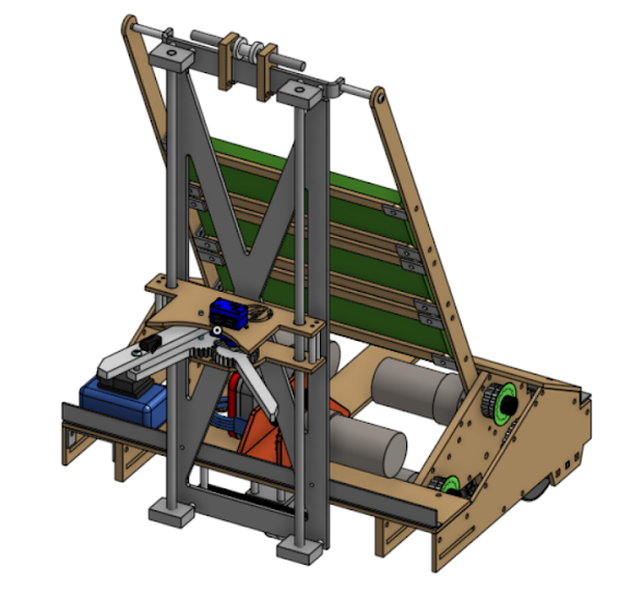 To raise and lower our claw carriage to match the appropriate height of the infinity stones, we used a winch or spool mechanism. To raise the claw we would simply spin the winch motor which would wrap the string about the spool, providing a tension force parallel to the supporting rails.