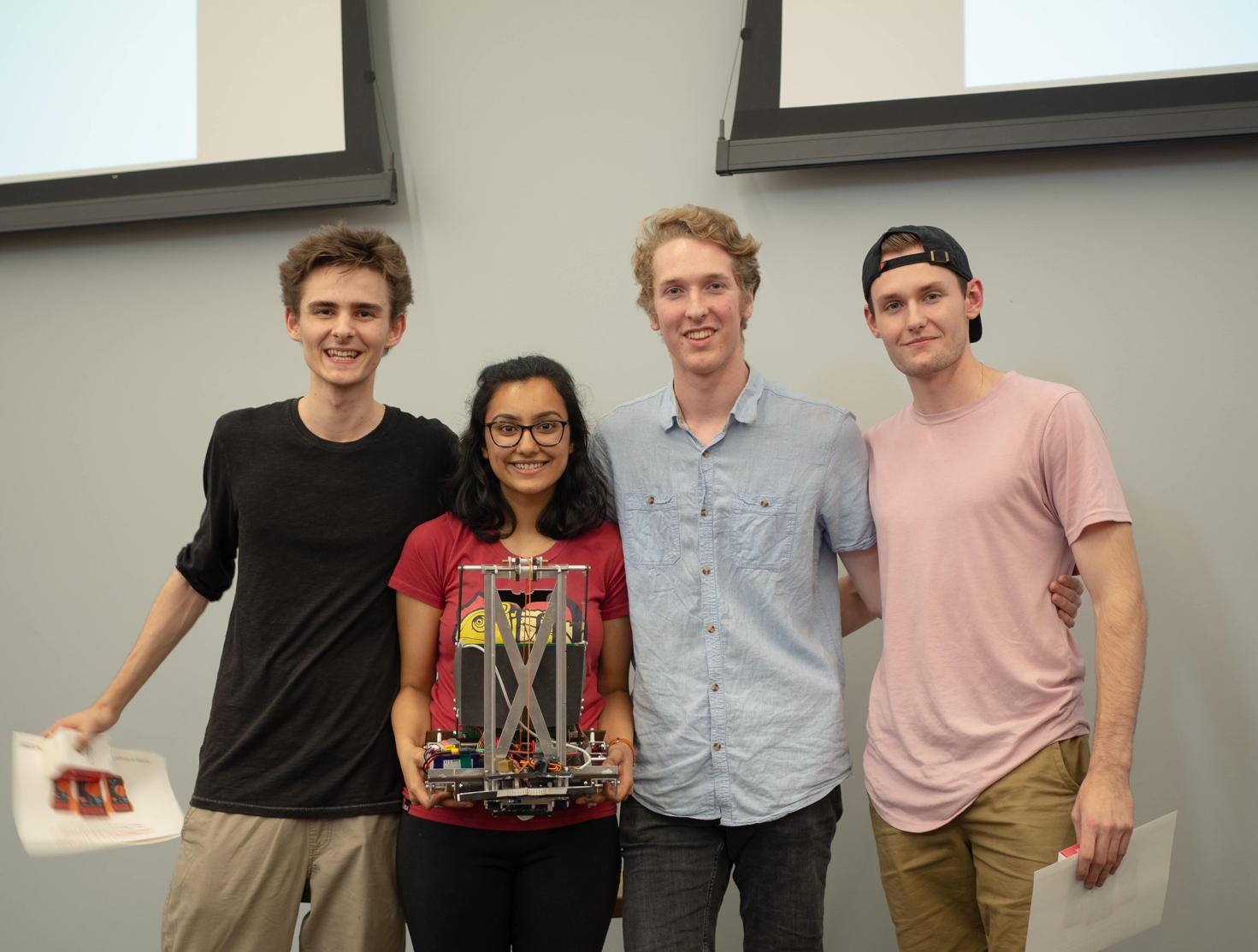 After months of hard work, our team was fortunate enough to come first place the 2019 UBC Engineering Physics robot competition! The pictures below are the team (Josh White, Kritika Joshi, Josh Zindler, and me), shortly after receiving our first place prizes, and our final competition-ready robot.